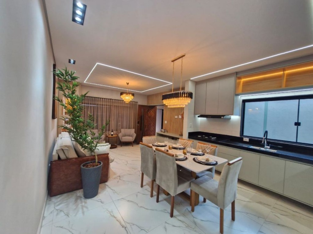 3 suítes, cozinha, lavabo, sala de estar e sala de jantar, área de serviço, mezanino, dependência de empregada, todos os banheiros com box, área gourmet com churrasqueira, garagem com vaga para 6 carros - 249 m² de área construída, pé direito 2,80 m e 3,00 m Porteira fechada, menos eletrodomesticos e itens pessoais.