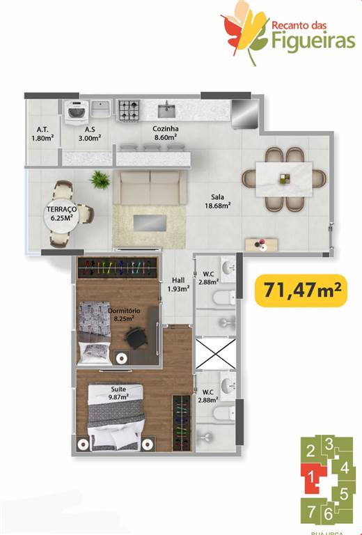 Área Útil71,47m²