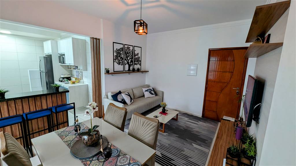 Excelente apartamento de 02 dormitórios, sendo 01 suíte, 01 vaga de garagem, sacada envidraçada integrada com a sala, mobiliado e decorado. O imóvel está localizado no Jardim Real, bairro que tem recebido muita valorização através de recentes investimentos em Praia Grande proporcionando mais comodidade e segurança aos turistas e moradores